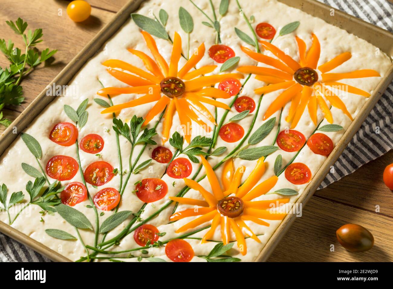 Homemade Flower Focaccia Bread Art With Herbs And Vegetables Stock Photo Alamy